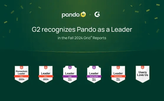 G2 is the trusted platform for millions of professionals seeking unbiased, authentic peer reviews on software solutions. Badges from G2 help businesses make confident, informed software decisions. In the Fall 2024 report, Pando has earned the 'Leader' and 'Momentum' badges, validating our commitment to product innovation, customer satisfaction, and growing influence across key logistics categories.
